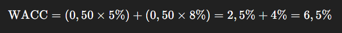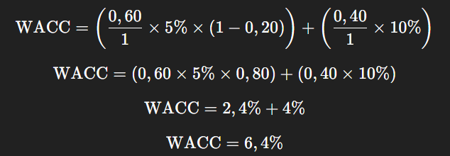 Agora, o WACC vai ser calculado ponderando essas duas fontes de dinheiro: