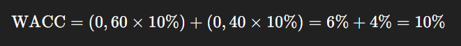 - Estrutura de Capital da Empresa: A empresa tem 60% de dívida e 40% de capital próprio (ações).